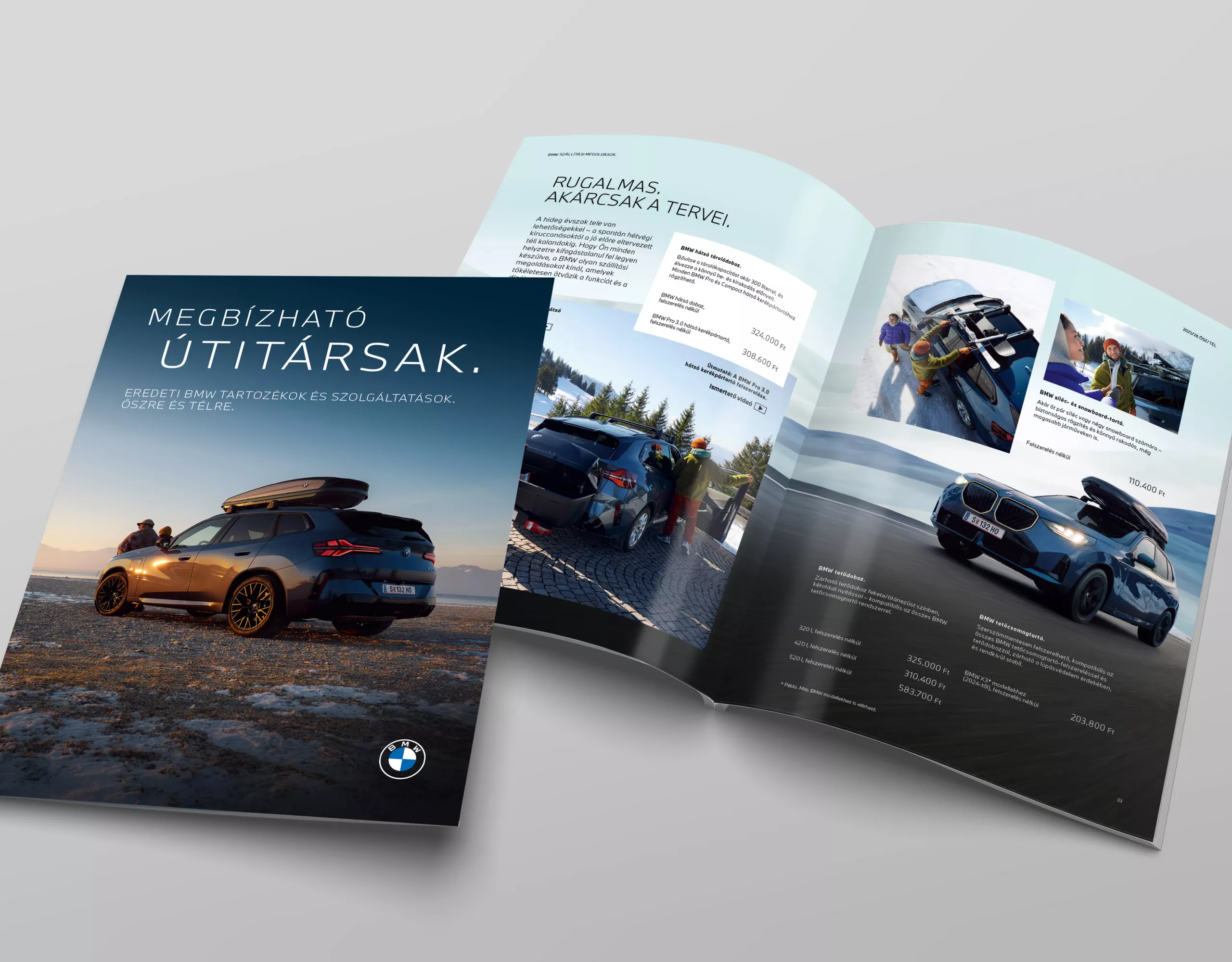 Bármilyen évszak is legyen, bármi legyen is az utazás oka. Az eredeti BMW tartozékok minden utazást magasabb szintre emelnek. Az Ön BMW járművéhez tökéletesen illeszkedő kialakításuknak köszönhetően ideális megoldást kínálnak minden helyzetre. Kezdje el kalandját most az eredeti BMW tartozékokkal.
